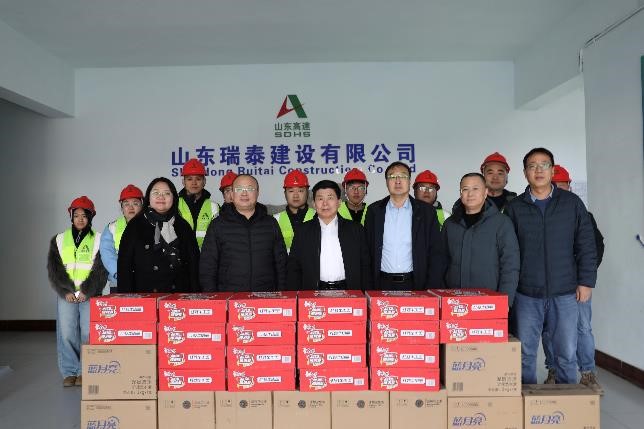 2月11日,公司黨委副書(shū)記、總經(jīng)理、董事劉漢興一行到瑞泰公司S236辛濱線(xiàn)濱城繞城段改建工程施工一標(biāo)段項(xiàng)目經(jīng)理部慰問(wèn)一線(xiàn)員工。公司黨委委員、工會(huì)主席、職工董事于光,黨委委員、副總經(jīng)理、安全總監(jiān)張繼軍陪同。