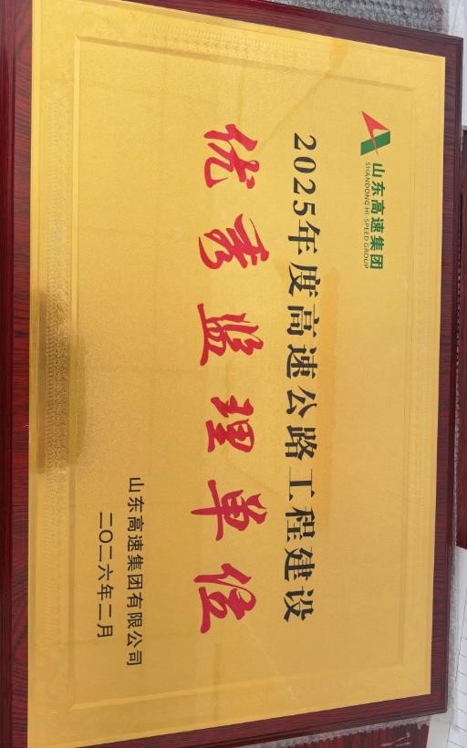 當(dāng)前位置:網(wǎng)站首頁>>監(jiān)理咨詢| 監(jiān)理公司榮獲山東高速集團“2025年度高速公路工程建設(shè)優(yōu)秀監(jiān)理單位”稱號 |
