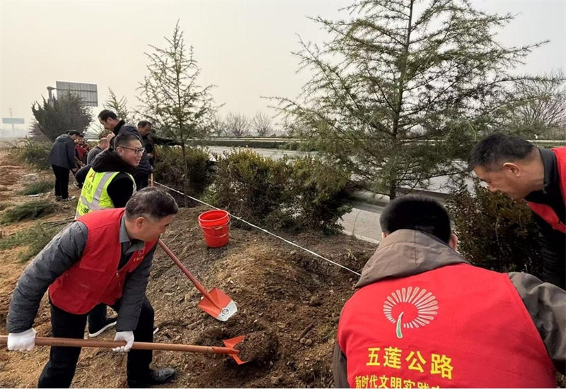 3月12日,正值植樹節(jié),董梁高速一標(biāo)段項(xiàng)目部聯(lián)合五蓮縣公路事業(yè)發(fā)展中心,在叩官鎮(zhèn)G342國(guó)道旁開展“黨旗領(lǐng)航植新綠 合力共建筑新景”植樹活動(dòng)。