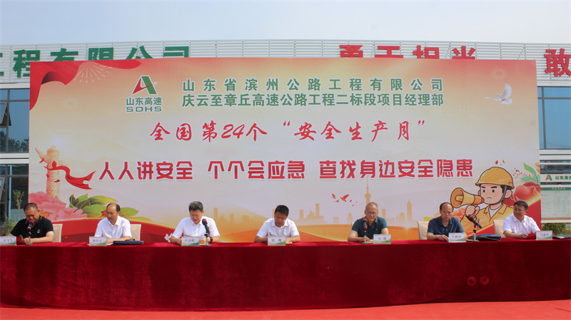 5月30日,第24個全國“安全生產月”來臨之際,工程公司慶章高速二標段項目部舉行2025年“安全生產月”活動啟動儀式,旨在強化員工安全生產意識,提升全員應急處置能力,確保工程施工安全有序進行。濱州交發(fā)黨委委員、副總經理鄒鋒,安全管理部有關人員參加活動。